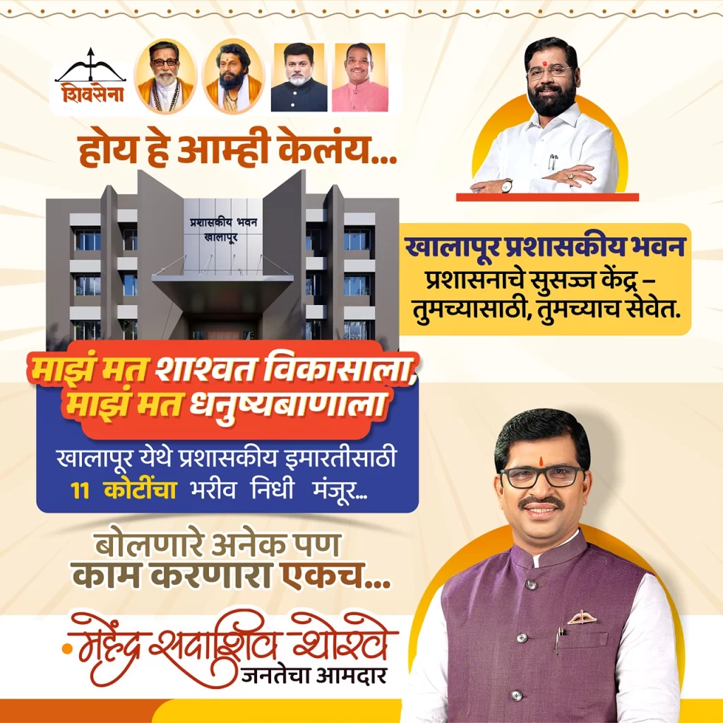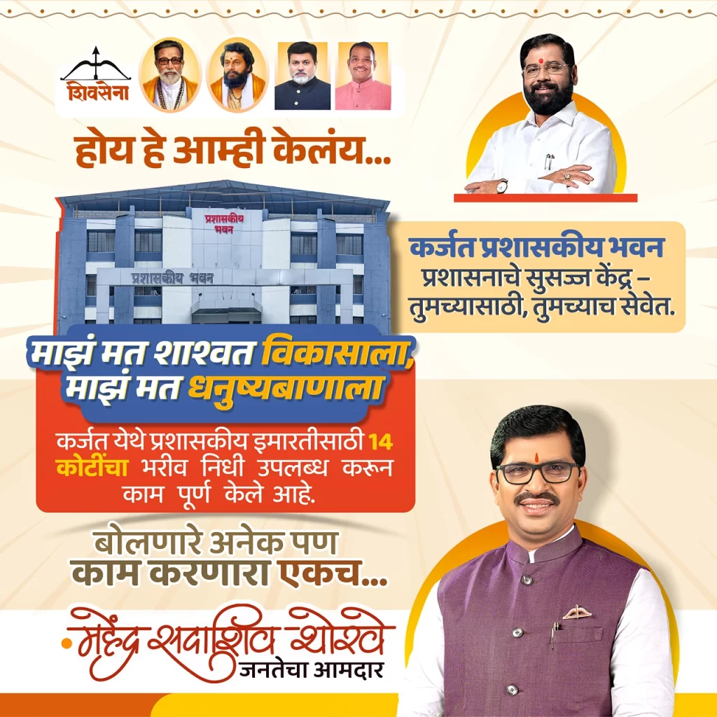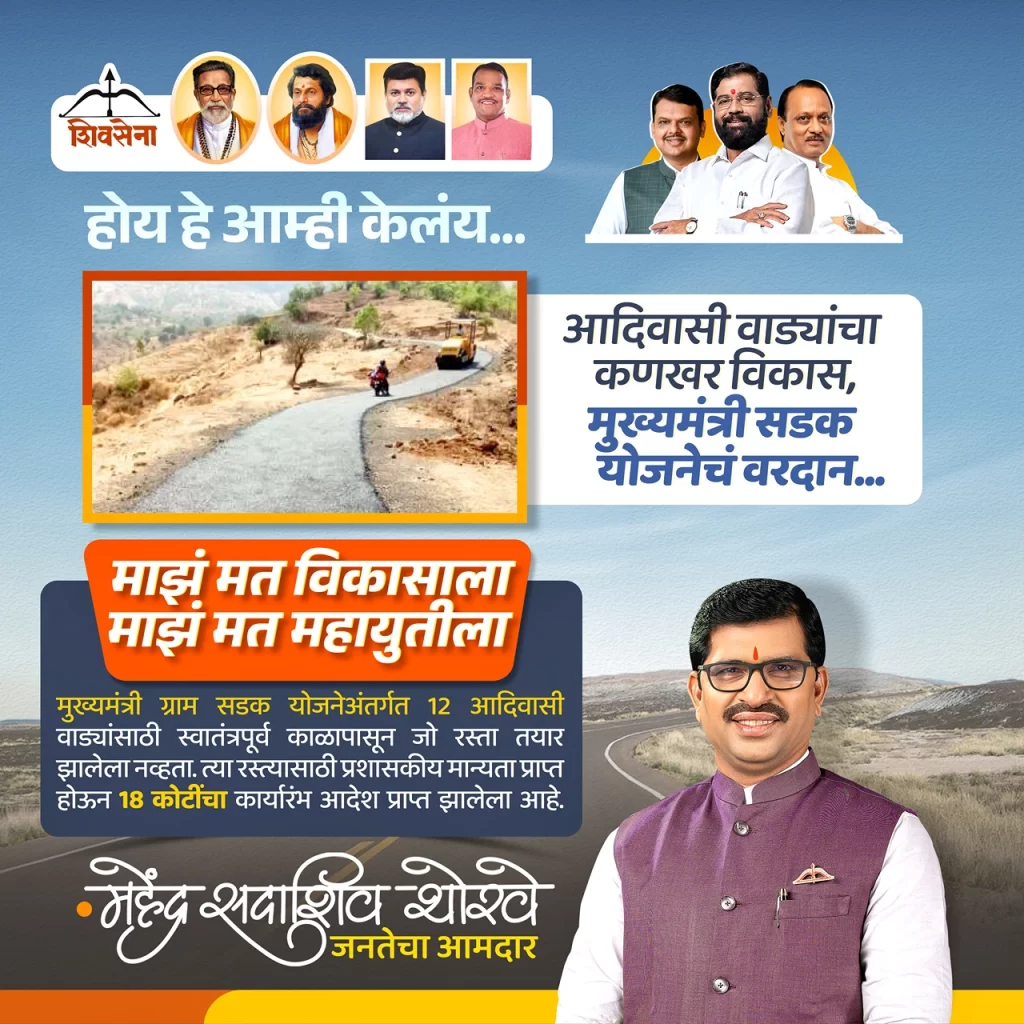 विविध विकासकामे, ‘मुख्यमंत्री – लाडकी बहीण योजना’, ‘नळपाणी योजना’, ‘ग्राम सडक योजना’ यासारख्या लोकोपयोगी योजनांची प्रभावी अंमलबजावणी करून. कर्जत खालापूरचा भविष्यवेधी आमदार म्हणून, महेंद्र थोरवे ह्यांनी जनतेच्या मनात घर केले. त्यांनी, इथल्या तरुणांसाठी नोकरी मेळावा भरवला, आणि तब्बल १२०० तरुणांना नोकरी मिळवून दिली. ह्या नोकरी मेळाव्याच्या माध्यमातून त्यांनी तरुणांना सुरक्षित भविष्य देण्याचे महत्वाचे काम केले.