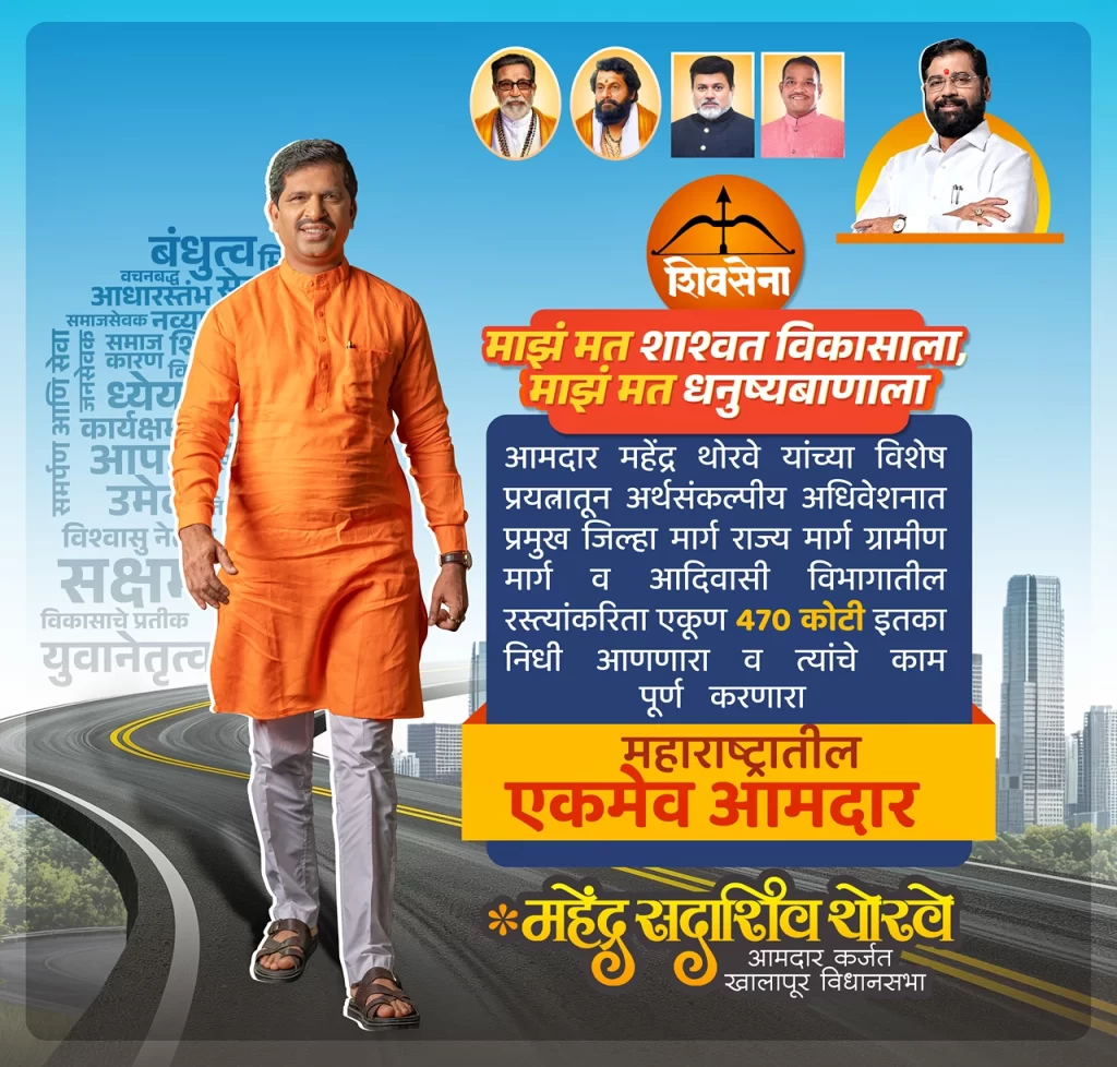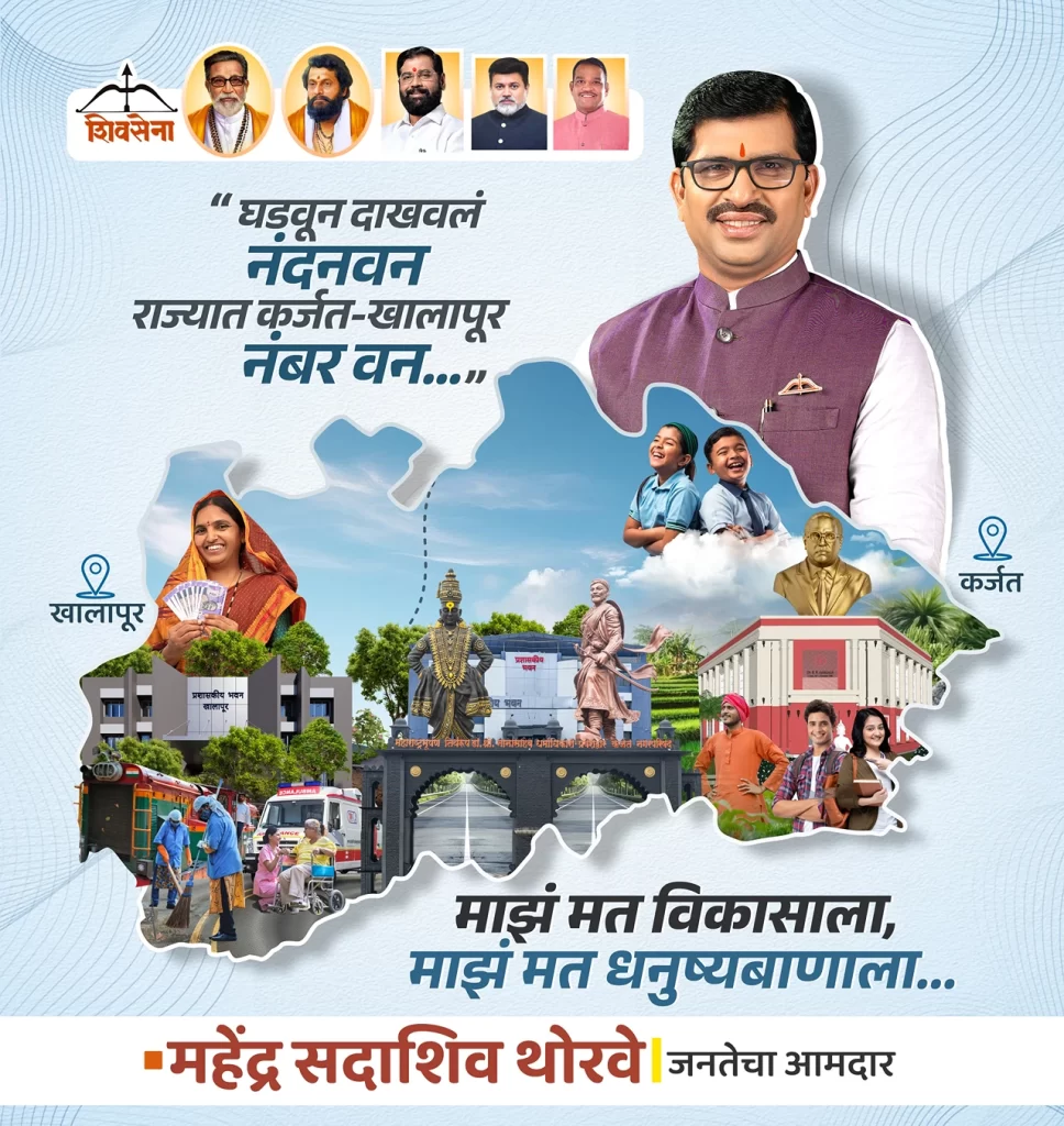तळागाळातून राजकारणात आलेला माणूसच, तळागाळातील लोकांसाठी लोककल्याणकारी राजकारण करू शकतो, ह्याचे उत्तम उदारहरण म्हणजे… १८९ – कर्जत खालापूर विधानसभा क्षेत्राचे आमदार महेंद्रशेठ थोरवे ! हिंदुहृदयसम्राट वंदनीय बाळासाहेब ठाकरे ह्यांच्याकडून प्रेरणा घेऊन, कर्जत – खालापूरमध्ये त्यांनी जनतेच्या उद्धारासाठी शिवसेनेचा झेंडा हाती घेतला आणि ह्या भागाला पुन्हा शिवसेनेचा बालेकिल्ला बनवलं.
